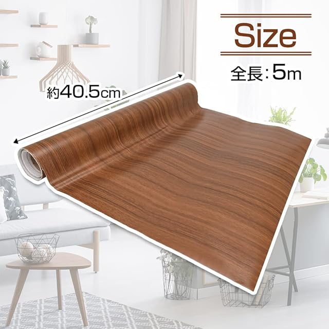 【セット内容】木目シート×1巻 【サイズ(約)】幅:40.5cm 長さ:5m 【カラー】木目調ダークブラウン