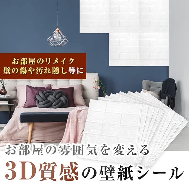 簡単に模様替えができる3Dタイプのウォールステッカーです。本物のレンガのような風合いと落ち着いたホワイトカラーが魅力的です。