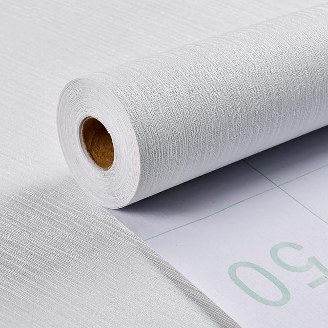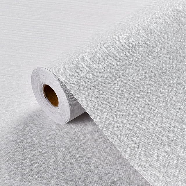Haimin 壁紙シール60cm×10m はがせる壁紙 白い 立体感 縞模様 無地壁紙ホワイト 防水 防汚 耐熱 リメイクシートDIY 装飾シート居間 寝室 店舗 壁 家具 (ホワイト) | ascend