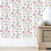 【仕様】サイズ:約45cm*10m; 素材:PVC; 接着剤不要 柄:花鳥柄 ★仕入れる生産ロットにより、色合いや模様の出方が若干変わる場合がございます。予めご了承ください。できるだけ一回で足りる分をご購入ください。