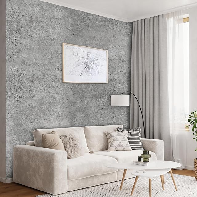 【コンクリート調】サイズ:幅40cm×長さ10M。シンプルで特別な柄で、洗練された雰囲気になり、様々な雰囲気の部屋にもピッタリのタイプです。
