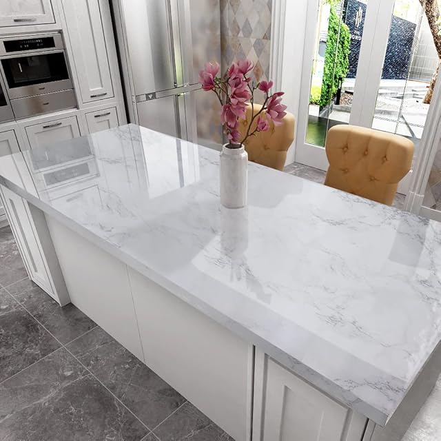 大理石シート 壁紙シール はがせる 大理石シール 10mx40cm 大理石 リメイクシート 防水 大理石調 カッティングシート 壁紙 おしゃれ 厚手 耐熱 キッチン浴室 大理石壁紙 (白・グレー) | ascend