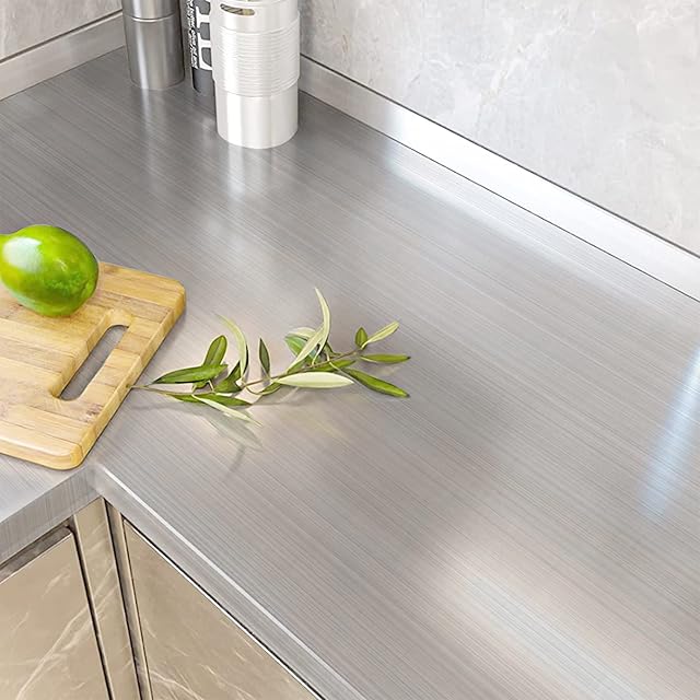 【仕様】●サイズ:幅0.4m x 長さ3m ●厚さ:約0.22mm ●タイプ:ステンレス 金属 ●素材:塩化ビニル(PVC) ●色:シルバー ●防水防油 ●のり付き