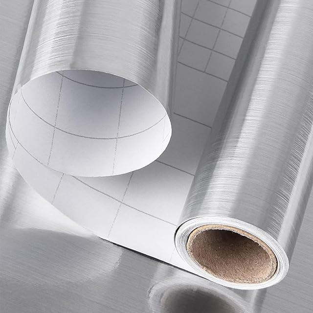 壁紙 TACHIO 40cmx5m 壁紙シール シルバー のり付き アルミシート 賃貸OK はがせる 防水耐熱 リメイクシート ステンレス 金属 質感 部屋 DIY カッティングシート 防カビ | ascend