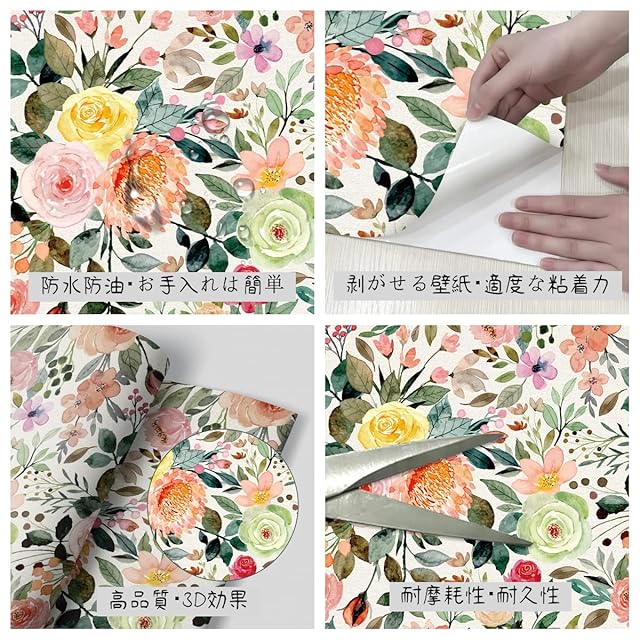 サイズ:約44cm*10m。 柄:花柄・草木柄。 材質:PVC。 ★生産ロットにより、色合いや模様などが若干変わる場合がございます。予めご了承ください。