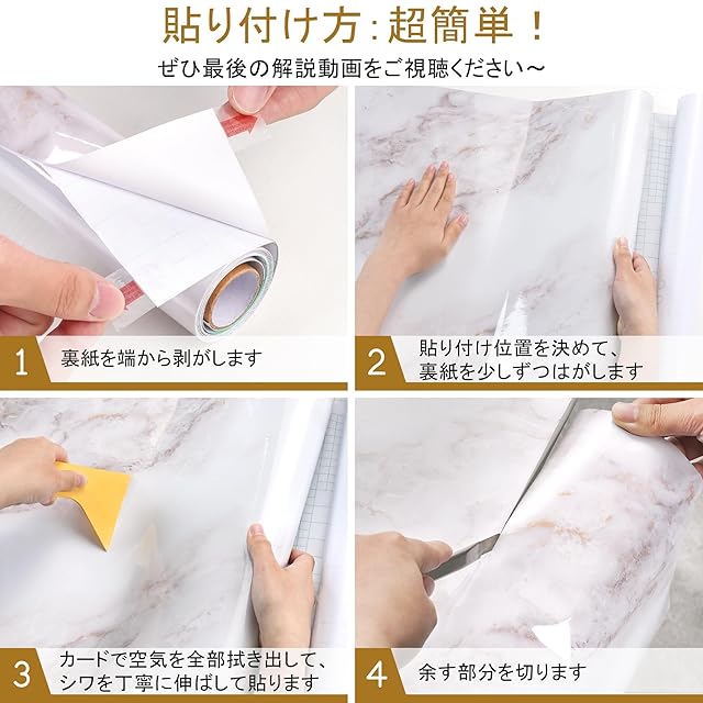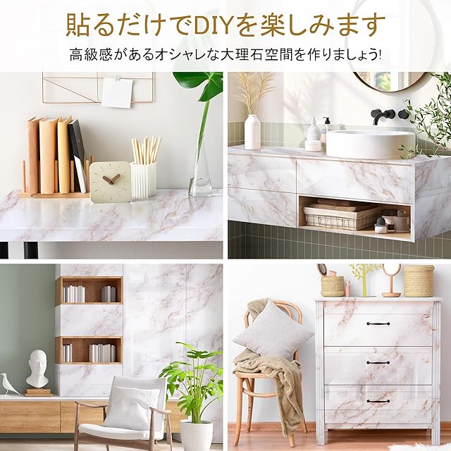 【簡単貼り付け&賃貸OK】裏紙を剥がして貼るだけ!貼り道具を持っていない初心者でも綺麗に貼れます。貼ってはがせるシールタイプなので、剥がした時も糊残らず、賃貸住宅でもお手軽に利用できます。※貼る面の素材によって、貼る面にのりが残る場合があります。原状復帰が求められる賃貸住宅でのご利用は十分ご注意ください。【用途】お部屋の壁、キッチン、浴室、トイレ、家具、テーブル、扉、古くなった家具の再生、小物のdiyやアクセサリの撮影用など様々な場所に活用!水や汚れを心配せず、ご家庭やオフィスの所々もアレンジできます。