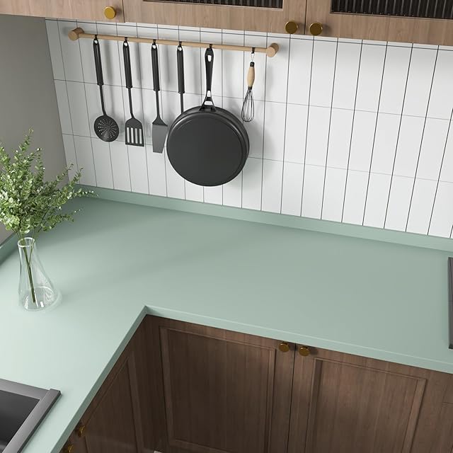 ✿使用簡単✿くすみグリーンのリメイクシートは、測定用のグリッド線付き、スムーズにカットできます。シール式の壁紙で、裏の台紙をはがして貼るだけで簡単にお部屋の模様替えができます。貼り直す可能で使いやすいです。賃貸やはじめての方でも簡単に貼ることができます