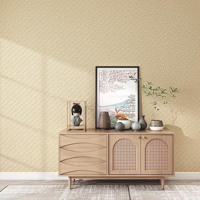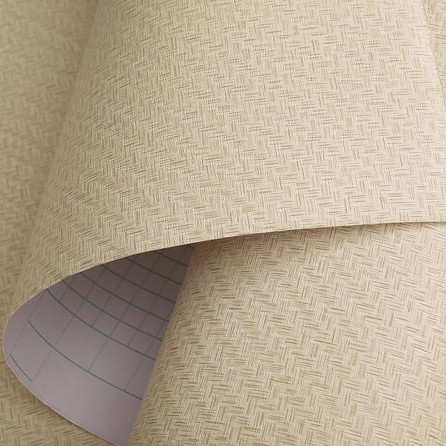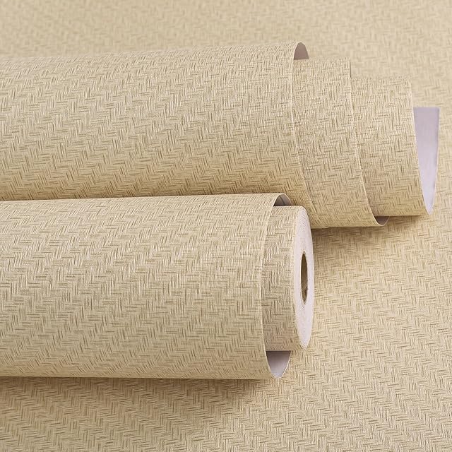 Haimin 壁紙シールはがせる60cm×10m無地 織物調 壁紙シール 麦わら織りの質感 リネン壁紙 リメイクシート 3D 厚手 自己粘着 模様替え 補修 多用途 ふすま紙 (薄黄色 -5)… | ascend