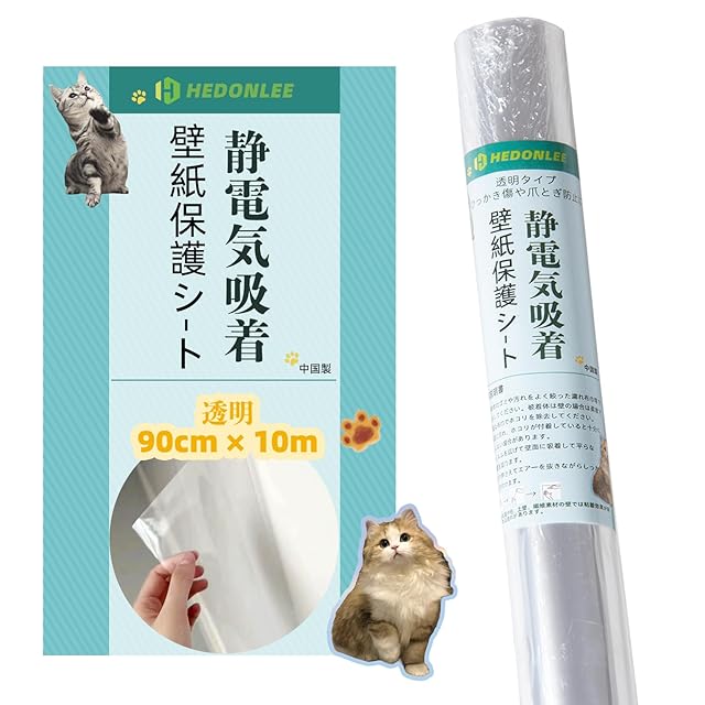 HEDONLEE 猫 壁紙保護シート90cm*10m 静電気吸着 壁紙シール はがせる 透明シート 爪研ぎ防止 ペット のり要らない キッチン 家具/柱/机/壁の傷や汚れを防ぐ 貼るだけ簡単 落書き防止 賃貸OK (90cm*10m) | ascend