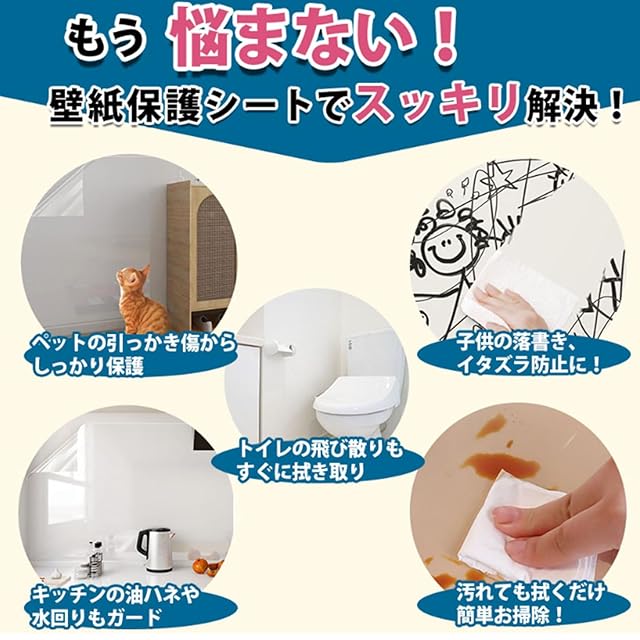 ✅【貼りやすい&カットしやすい】猫 壁紙保護シートは剥離紙がマス目がついていて、カットしやすいし、使いやすい。貼りたい箇所のサイズを測りやすく、シワが入っても貼り直しも可能なので、貼る時に失敗しにくいです。一人でも簡単に貼れます。