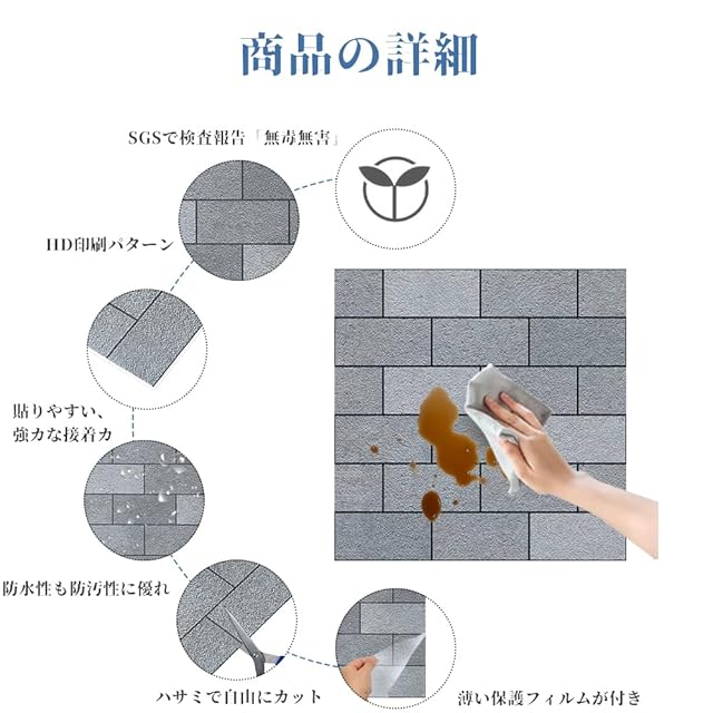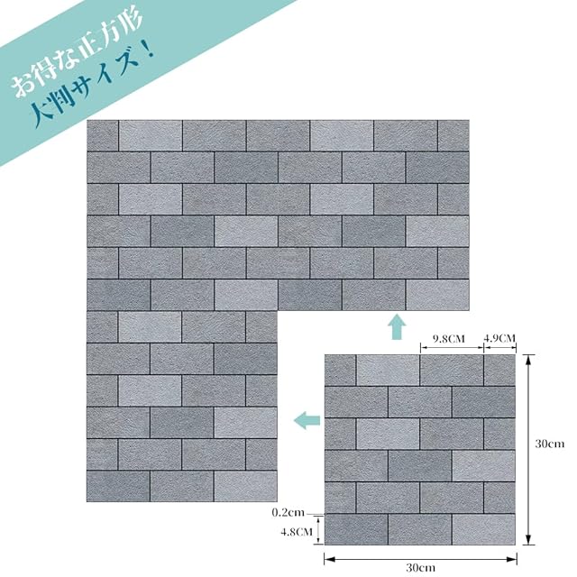内容:10枚セット、一枚のサイズ:約30cmx30cm、厚さ:約0.5mm、材質:PP+PET※3D立体風ですが、実際はプリントされているので平面となります。 ※剥がした後にベタベタ感が残ります。ご了承の上ご購入下さい。 マスキングテープを下地に使うと綺麗にはがせ賃貸などでも安心して使用できます。