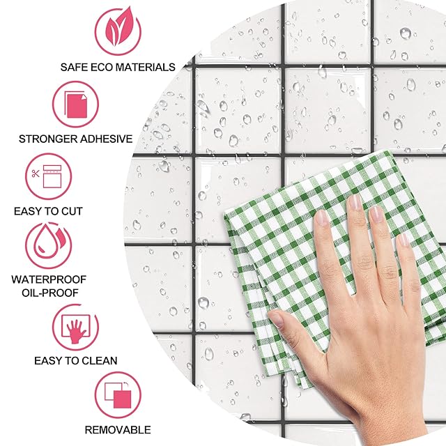 MORCART | 常に適切な | ホワイトラージチェック タイルシール 防水 耐熱 キッチン 洗面所 トイレ DIY 家具やアイテムの装飾 タイルシート 壁紙シール 3D リメイクシート (30x30cm, 10枚) | ascend
