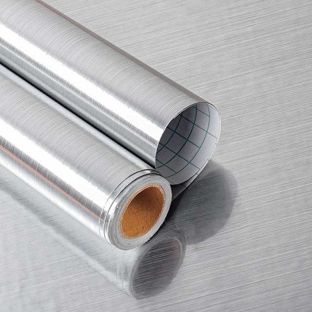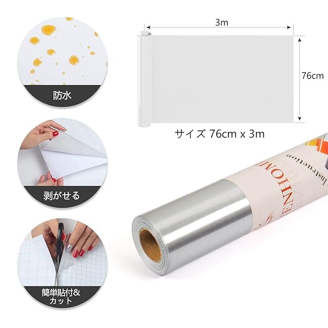 Yenhome ステンレスシート 壁紙シール シルバー 76cmx3m アルミシート はがせる壁紙 のり付き壁紙 防水壁紙 壁紙シート 銀色 カッティングシート メタリックシート 補修 防カビ 防汚 冷蔵庫 洗濯機 食器洗い機 | ascend