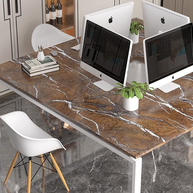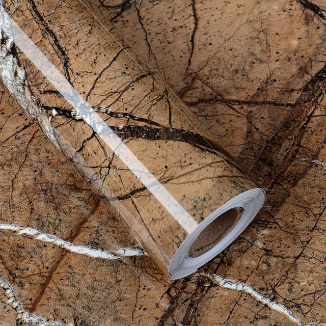 【 大理石シート.実用性簡単に調理台修復 】❶素材:高品質PVC/大理石柄/光沢 ツヤあり/。強粘着力・防水・耐熱・拭い易い・簡単掃除。❷カラー:ブラウン 茶色、高級感の大理石風リメイクシート❸サイズ:幅40cm、長さ5m。❹自由裁断、大理石風ウォールステッカー。裏面に粘着シールがついているので、紙を剥がして貼るだけで簡単にリフォームできます。自由にDIY 初心者でも使いやすい。