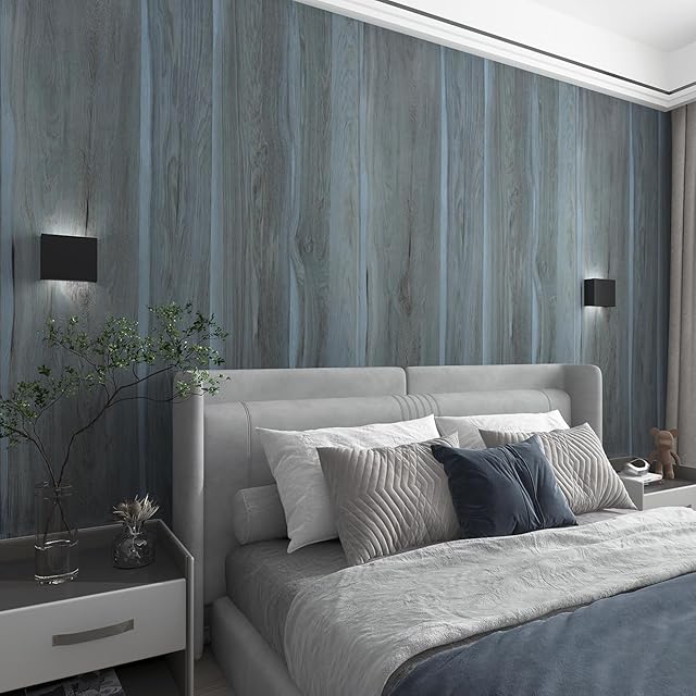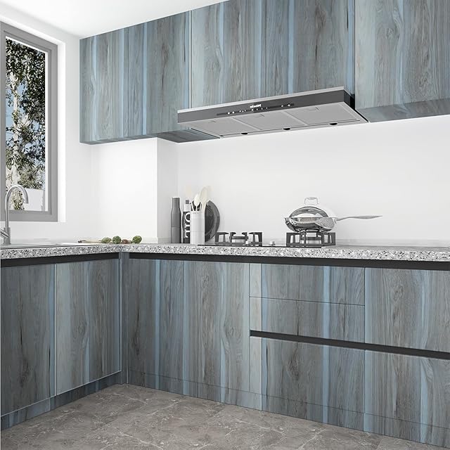 TOTIO 木目リメイクシート ピーコックブルー 超広幅木目調自貼壁紙シール 80CMx4M 気泡のないデザイン 滑らかな表面 マット 厚手 剥がせる 防水 防油 耐熱 青色木目調カッティングシート キッチン浴室装飾フィルム おしゃれ壁紙シート 家具補修シールシート, 壁、机、テーブル、ドア、作業台、食器棚、ワードローブに最適 | ascend