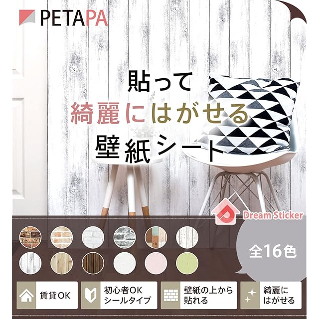 【シリーズ累計販売100,000m突破】大人気PETAPAシリーズの『貼ってはがせてのり残りしない壁紙』今の壁紙の上から貼っても綺麗にはがせるので賃貸の壁やドアなどの建具の装飾に安心して使用できます。