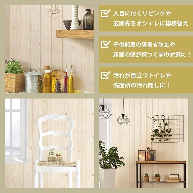 【シリーズ累計販売100,000m突破】『壁紙の上から貼る壁紙』で人気のシリーズからおしゃれな 木目調が登場。『貼ってはがせてのり残りしない壁紙』のため、壁紙の上から貼っても綺麗にはがせ賃貸の壁やドア等の建具の補修、装飾におすすめです。