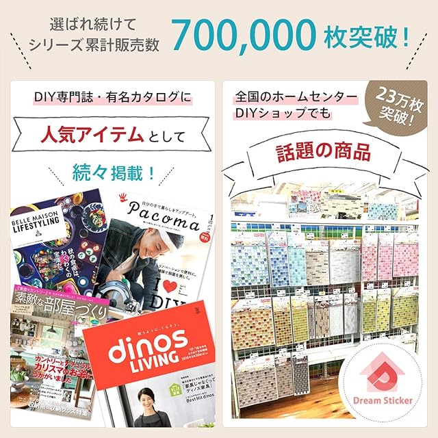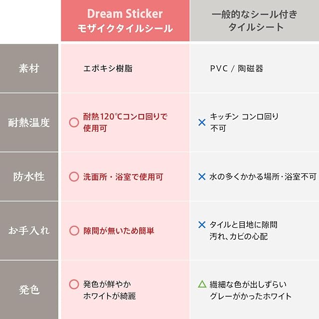 【安心の特許取得済みタイルシール】シリーズ累計販売数40万枚突破!シール感が無く、自然な光沢、 鮮やかな発色性、手触りが良くぷっくりした凹凸感が最大の特徴です。水回りはもちろん、家具雑貨の装飾もOK。