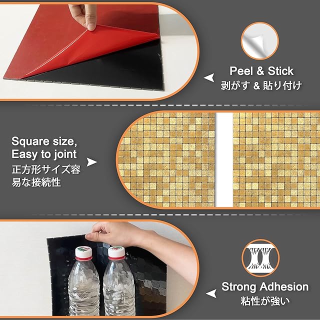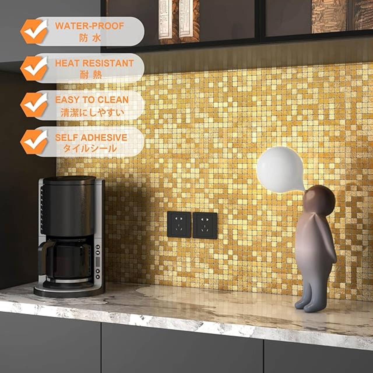 DIYしやすく、ゴール モザイクタイル シール:経験が不要です。裏面の剥離紙を剥がすだけのシールタイプなので、面倒な接着剤や目地は不要!鋭いハサミや箱型カッターを使用してタイルをトリミングすることをお勧めします
