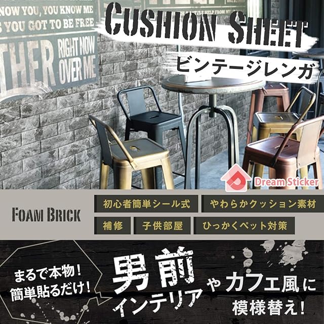 Dream Sticker クッションシート フォームブリック ビンテージ レンガ 壁紙リフォーム 立体シール 簡単DIY FB-06 (ビンテージ ベージュ, 99cm×29cm(76枚セット))