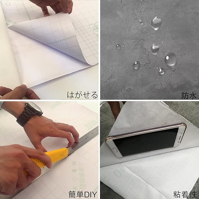 ✪【コンクリート壁紙簡単DIY】壁紙シールの裏面で網格があり測りやすい、任意の大きさにカットして使用することができます、リメイクシートは自粘着型で、剥離しながら貼ります、壁紙 で粘着力も強くあり施工は楽です。ほんの数ステップ:切り取る、引き裂く、投稿する、皮をむく,初心者でもできる。