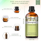 「レモングラスオイル」:100%天然レモングラス エッセンシャルオイルとは、天然植物から抽出され、その香りをそのまま生かします。合成香料などの化学物質は加えておらず、香りがとても豊かで長持ちします。