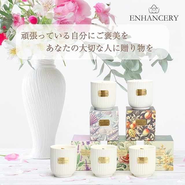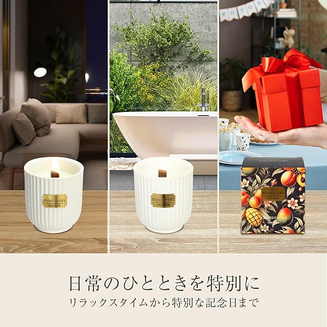 ENHANCERY アロマキャンドル ラベンダー ピーチ マンゴー ローズ バニラ シーブリーズ キンモクセイ 170g ギフト プレゼント 木芯 ウッドウィック 天然ソイワックス 陶器缶 エレガントな箱 (ゴールドキンモクセイ) | ascend