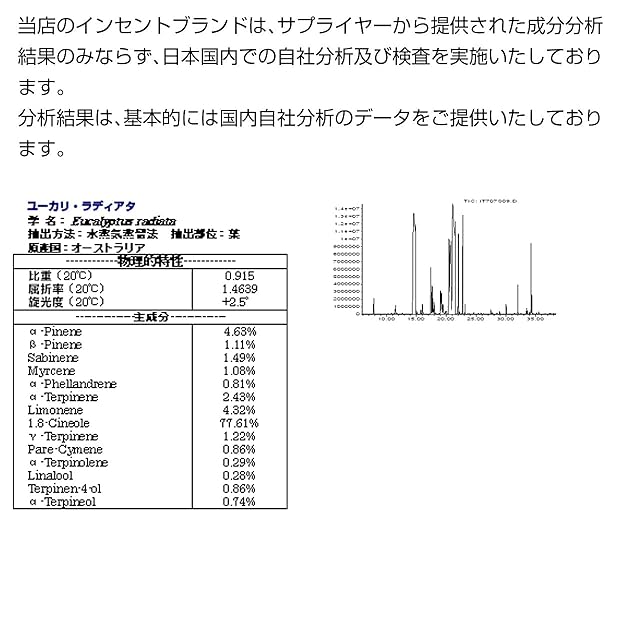 【抽出部位】葉【抽出方法】水蒸気蒸留法