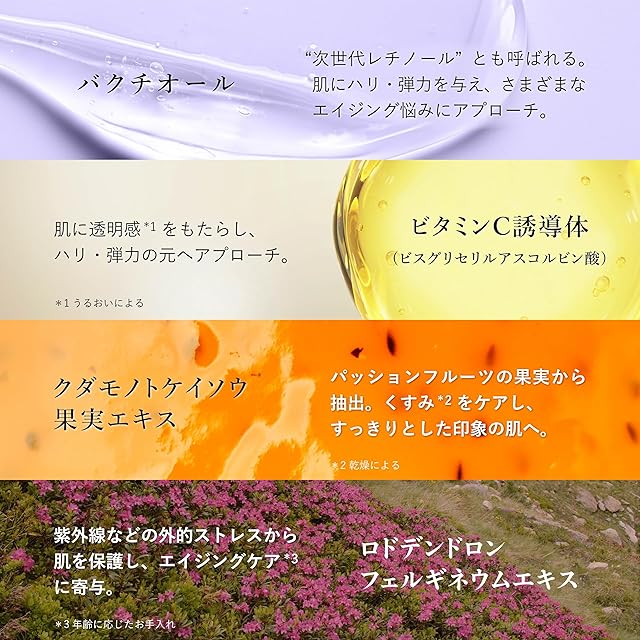 つけた瞬間からうるおい、続けるほどにその魅力を体感。まずは1か月ほど、毎日のケアに取り入れてみてください。 *1 整肌保湿成分 *2 ビスグリセリルアスコルビン酸(整肌保湿成分)