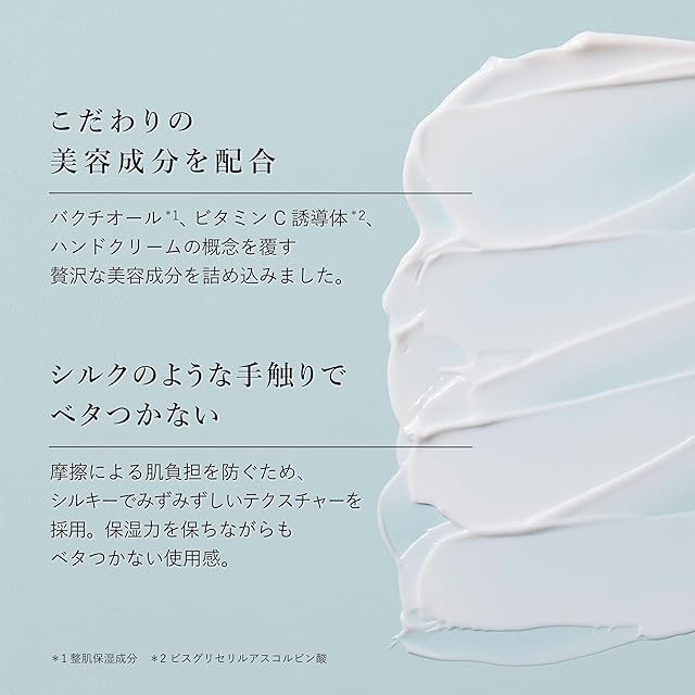 【美容成分】バクチオール*1、ビタミンC誘導体*2など、ハンドクリームの概念を覆す贅沢な美容成分を配合。