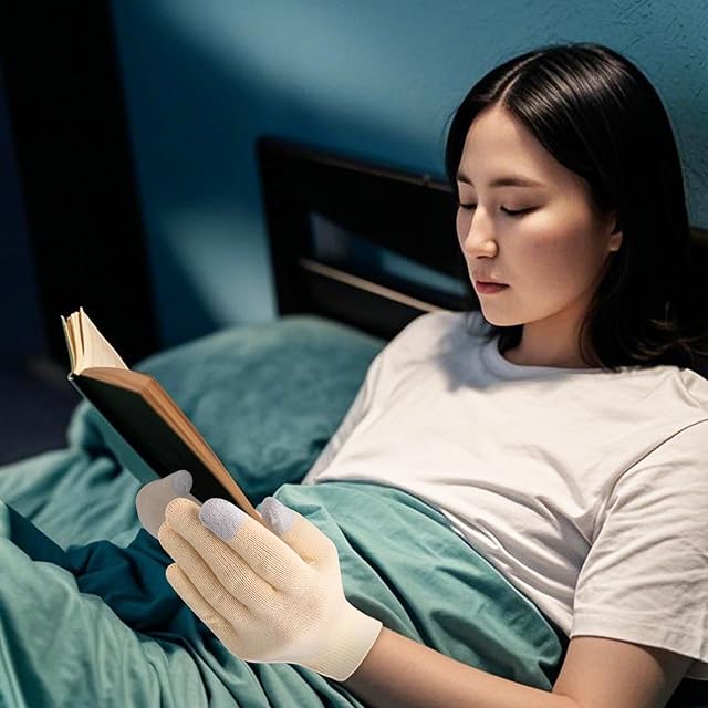 【お休み時の手袋に】スキンケア手袋は、圧迫感を感じることなく自然にフィットします。両手にローションを塗った後に一晩着用すると、乾燥したお肌やひび割れたお肌の奥深くまで水分を浸透させ、睡眠中に両手をケアし、寝具を汚すこともありません。毎日の生活にピッタリの美容手袋です。