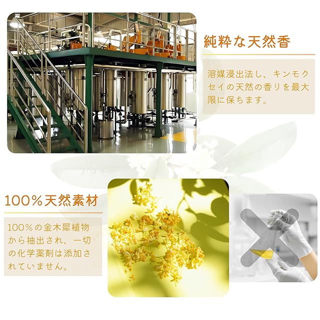 【心を落ち着かせる金木犀の香り】金木犀の精油に含まれるリナロール(Linalool)が、優やかな香りを漂わせ、日頃のストレスや不安を和らげてくれます。アロマディフューザーに数滴垂らすだけで香りが広がり、溜まった疲れがスーッと解れていくのを実感。枕カバーに 1~2 滴滴下するだけで眠りを助け、朝目覚めが軽やかになります。