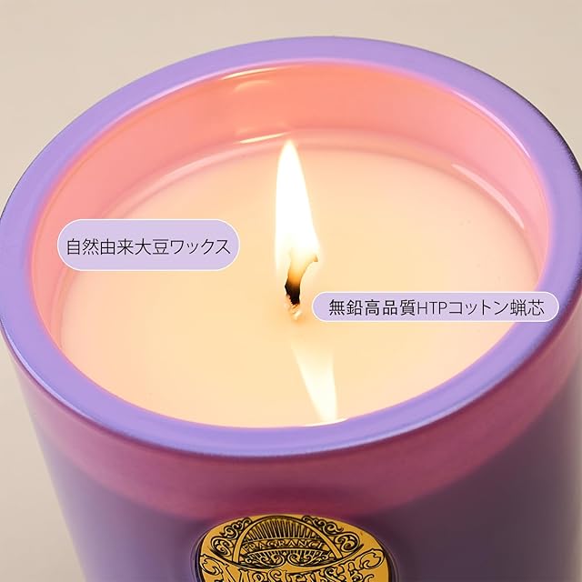 「高品質のエッセンシャルオイル」:高級エッセンシャルオイルを配合したアロマキャンドルは、燃焼中もフレッシュで自然な香りを安定的に拡散します。安全で無害、パラフィン、フタル酸エステル、パラベンを使用していないので、ギフトにも個人用にも安心してお使いいただけます。最適な香りを持続させるために、強い換気を避け、適度な広さの空間でご使用ください。