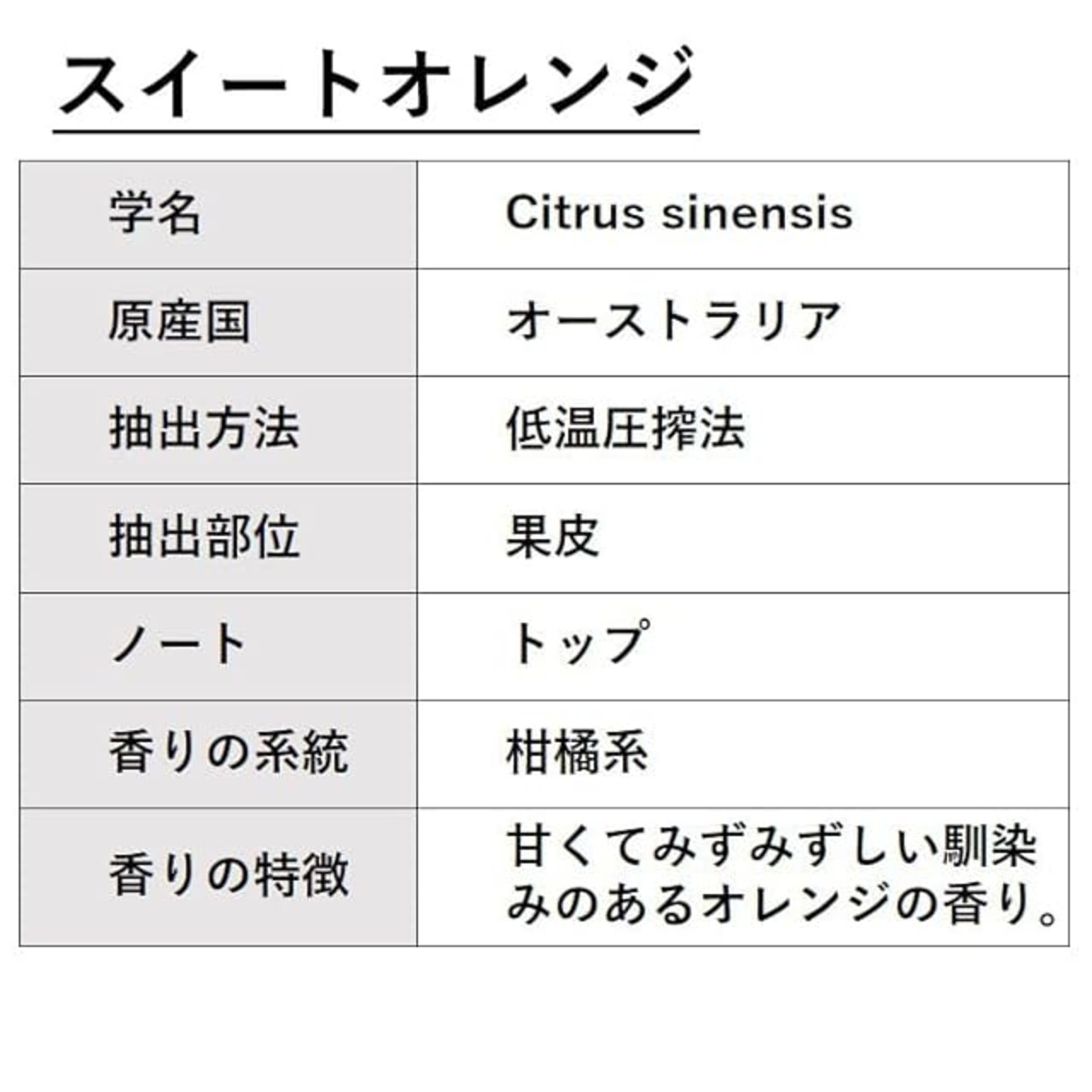 甘くてみずみずしい馴染みのあるオレンジの香り。