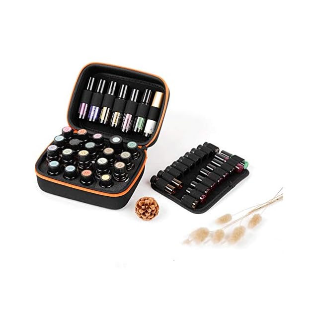 対応できるボトル:5ml 10ml 15ml 115ml 2種類の仕切り付き、ボトルを最大37本収納可。
