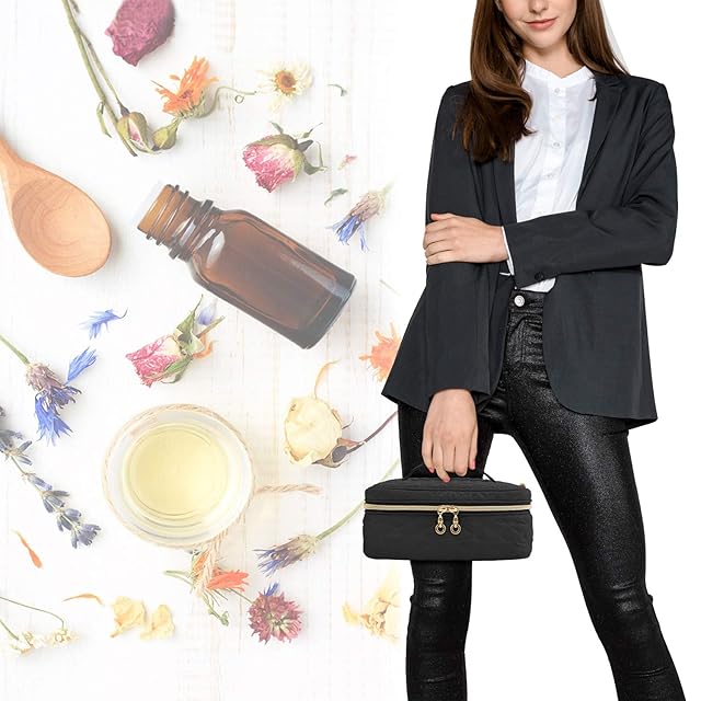 携帯に便利:上の取っ手により、精油やアクセサリーを簡単に持ち運べます。金色のダブルファスナーはスムーズに開閉することができます。