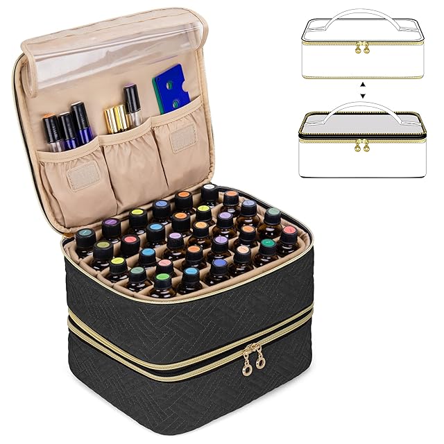 大容量:内部の仕切りが柔軟で調整可能なので、単一バッグにはエッセンシャルオイル5ml - 30mlのボトルを合計20本分を収納することができます。複数のポケットにはアロマテラピーに必要なスポイトやラベル、キャップオープナー、かくはん棒などを収納することができます。