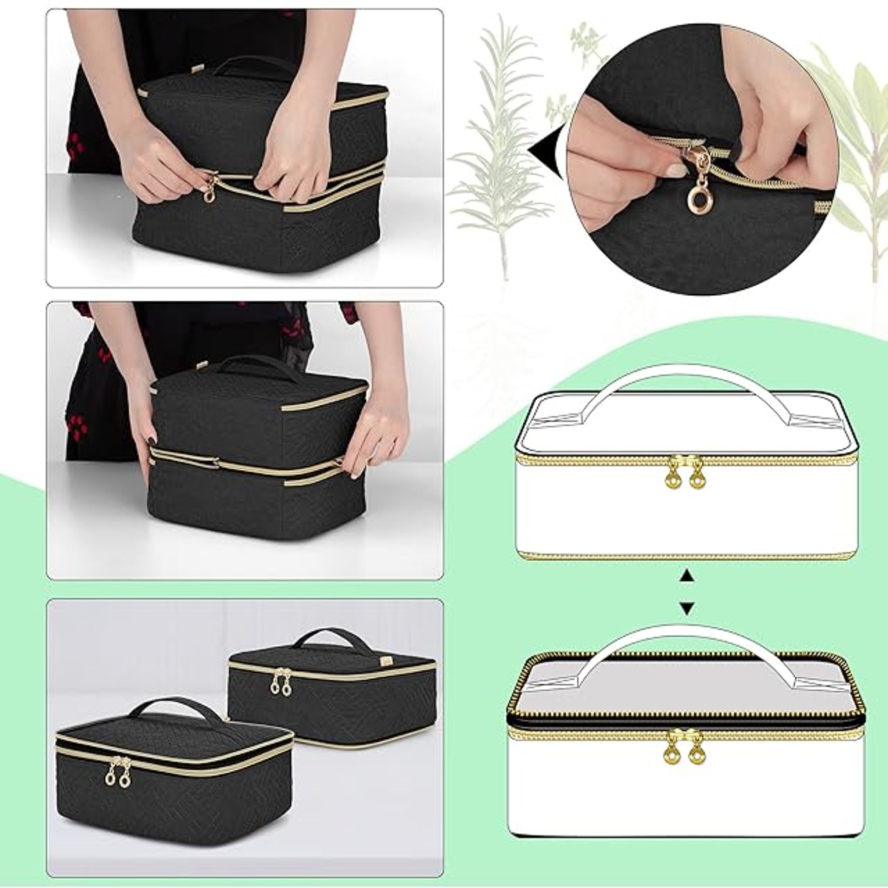 取り外し可能なデザイン:上下二段の間はファスナーで接続されているので、2つのアロマケースとして使用することができます。各ケースにはオイルを最大20本収納することができます。