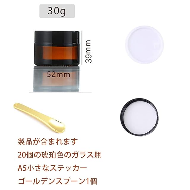 アロマ保存容器 遮光瓶 ガラス製 ハンドクリーム 保存 詰替え 容器 ブラウン (30g)