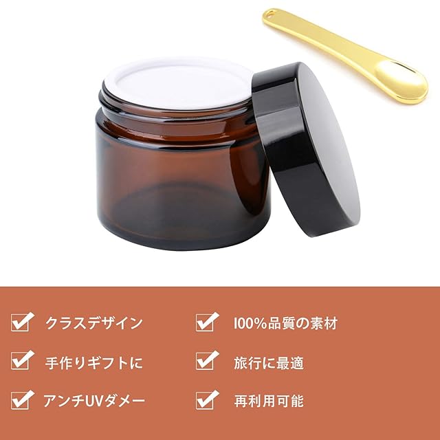 【小さな遮光瓶】ハンドクリームやアロマクリームの小分け・保存などに便利なガラス製の遮光容器を、お得なセットでご用意しました!品質保持の大敵である紫外線(日光)をしっかりと遮光してくれるため、内容物の変化や劣化を防ぐことができます