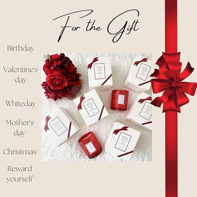 【香り】20種類以上の香りから厳選した5つの香り(ジャスミン、バンブー&グリーンティ、アンバー(バニラ)、チュべローズ、ヴェルベットローズ)は、蝋燭を消した後もほのかな香りが残り、お部屋を優しく包んでくれます。ふとした時に漂う残り香に「ふわっ」とさせられます。お気に入りの香りと出逢えますように。