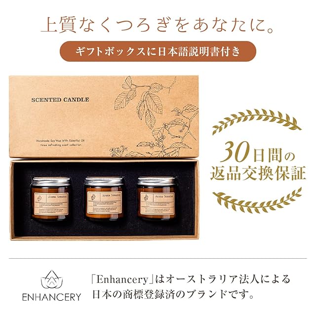 ENHANCERY アロマキャンドル アロマ ギフト セット ローズ ジャスミン バニラ 65時間 ギフトセット プレゼント (Aセット:ラベンダチャイムバニラトリュフ)