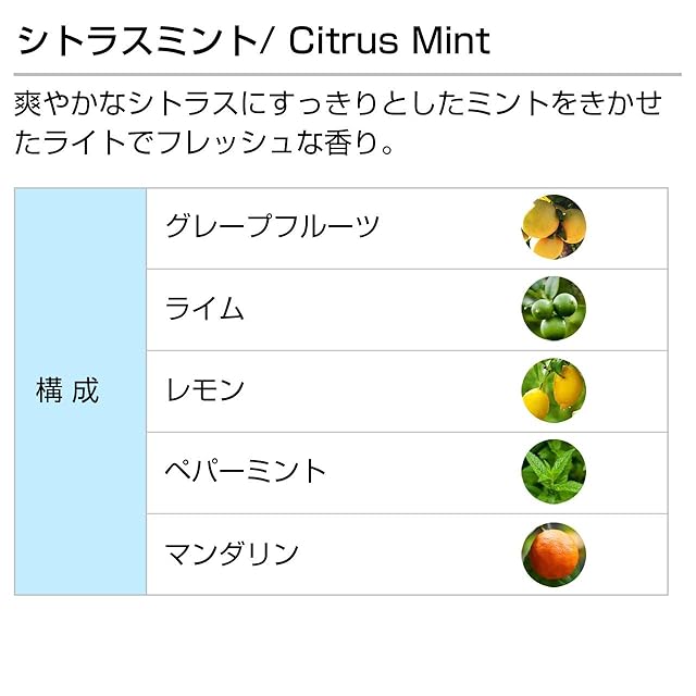 【構成】グレープフルーツ、マンダリン、ライム、レモン、ペパーミント