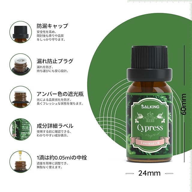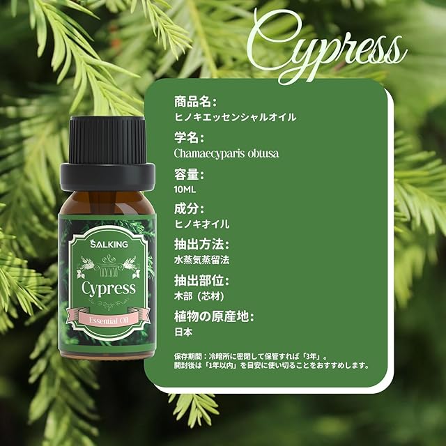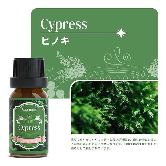 SALKING ヒノキ 精油 10ml 桧木 アロマオイル 樹木系 エッセンシャルオイル 天然 100% ピュア オイル リラックス/アロマディフューザー/加湿器/プレゼント にも最適 Cypress Essential Oil
