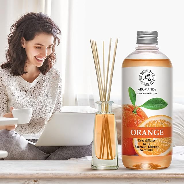オレンジ ディフューザー リフィル 500ml - 天然エッセンシャル オレンジ オイル入りルーム フレグランス ディフューザー - アロマセラピーに最適 - スパ - ホーム - キッチン - バス - オフィス - フィットネス - クラブ - レストラン - ブティック | ascend