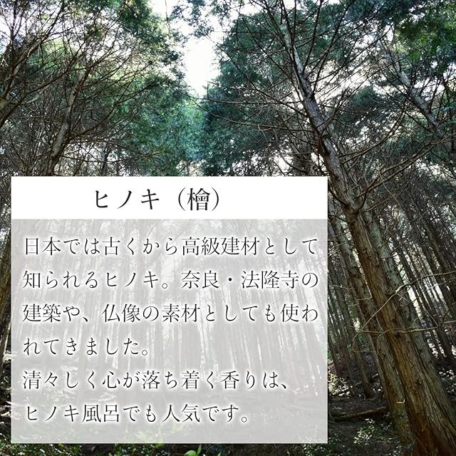 日本人に馴染深い、紀州の檜の精油です。 お風呂の香り付けとしても人気が高い香りです。