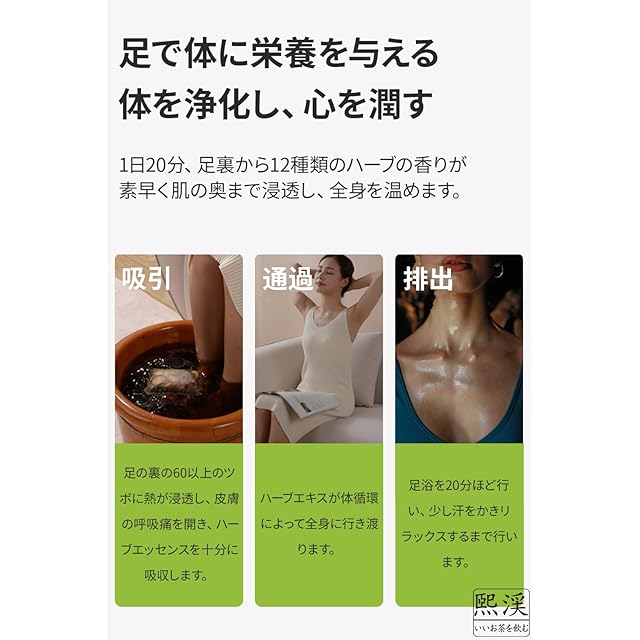 使い方:①お湯に浸す。お湯にバックを10~15分浸してから適量の冷水を加えて適温に調節すると使えます。足湯の時間は15~30でよい。②煮る。バックを適量の水に入れて水が沸騰したら10分ほど煮て適量の冷水を加え、水温を適温に調節すると使えます。お好みで使い方をお選びいただけます。