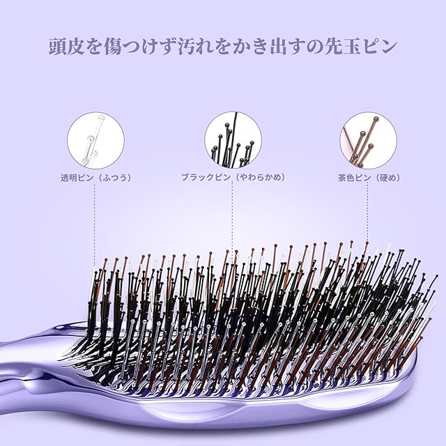 「頭皮ケア」:長短3段植毛と硬さの違う3種類のピンより、頭皮を程よく刺激。頭皮の血行を改善し、艶のある美髪へと導きます。髪だけでなく頭皮も同時にケアします。