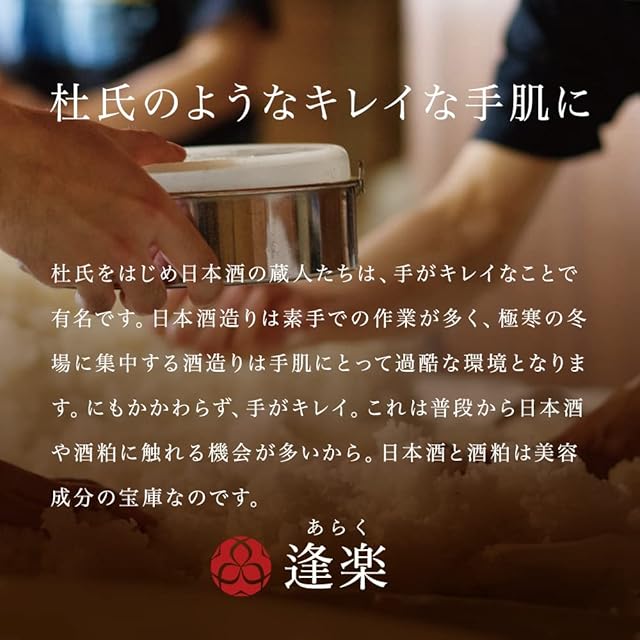 【日本酒の香りでリラックス効果】 香料を使用しておらず、地酒と酒粕の自然な香りを楽しめます。日本酒の香りに包まれるハンドケアで、癒しの時間を提供します。
