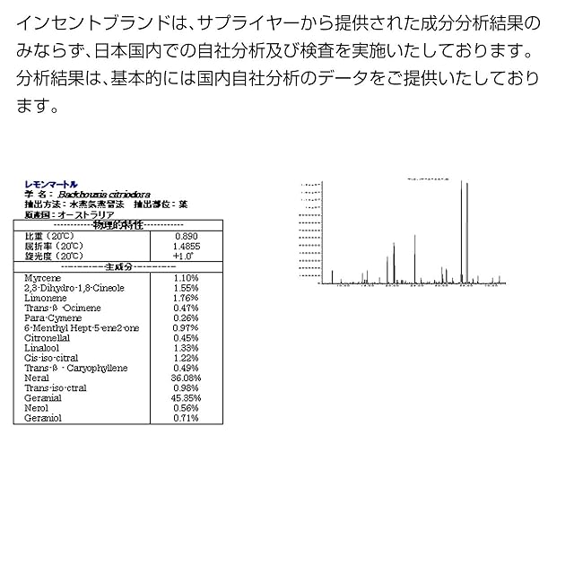 100%天然エッセンシャルオイル(精油) / 販売元の(株)インセントは取り扱い精油120種類以上のアロマテラピー専門会社です。